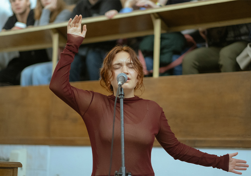 Esta innovadora propuesta, creada por Oleh Shpudeiko (conocido como Heinali), compositor de música electrónica que reimagina la música antigua a través de la síntesis modular, y Andriana-Yaroslava Saienko, cantante especializada en la tradición vocal ucraniana, resalta la visceralidad paradójica inherente a la escritura visionaria de Hildegard.